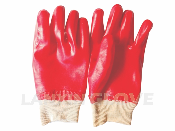 Red PVC Fully Coated, Cotton Interlock, Knit Wrist
